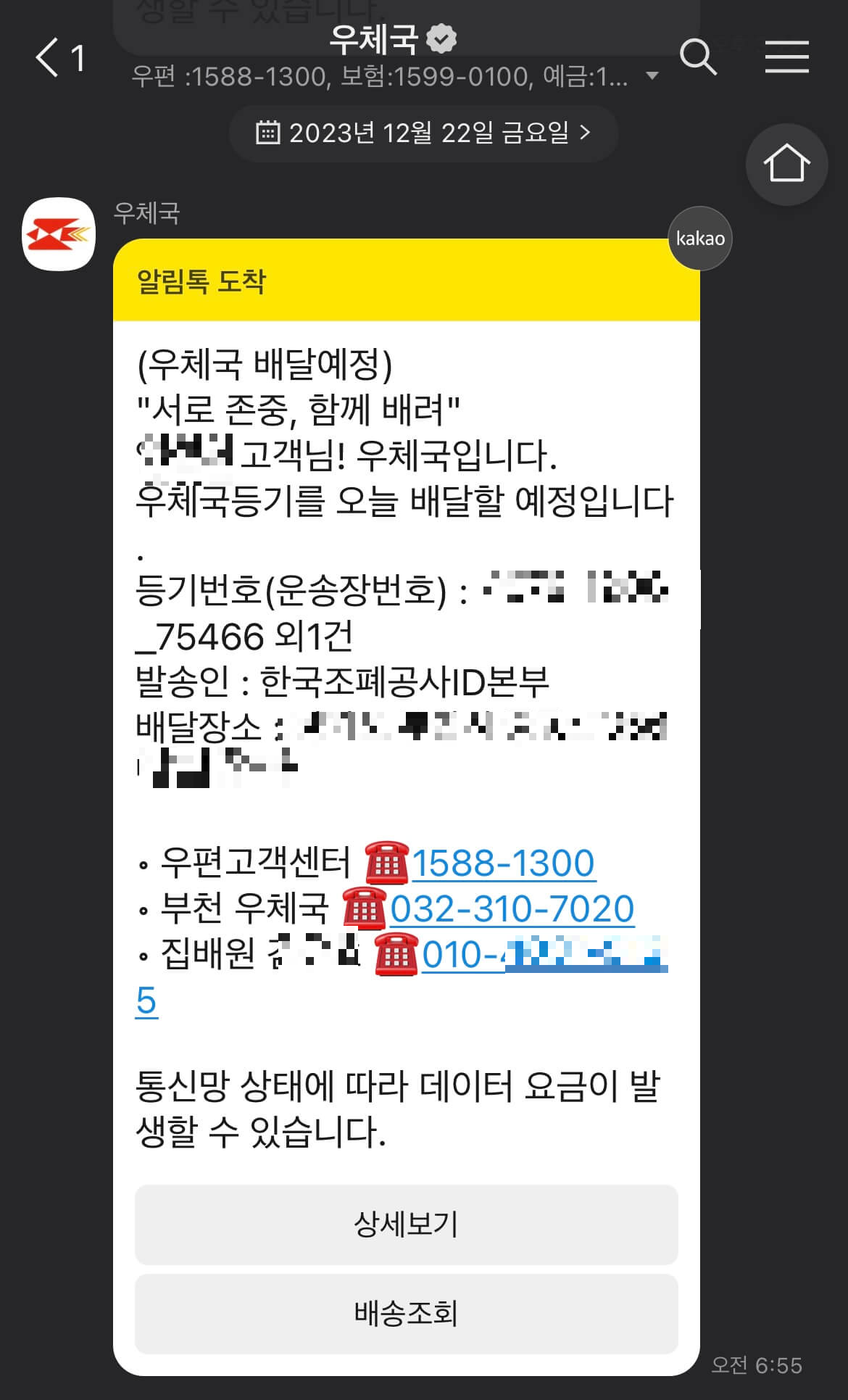 그리고 제작이 완료되고 우편배송시작하면 우체국에서 알림톡을 또 보내줘요. 대리인이 수령할 수 없고 신청자 본인만 받을 수 있으니 본인이 거주하는 곳으로 설정해두셔야 합니다.