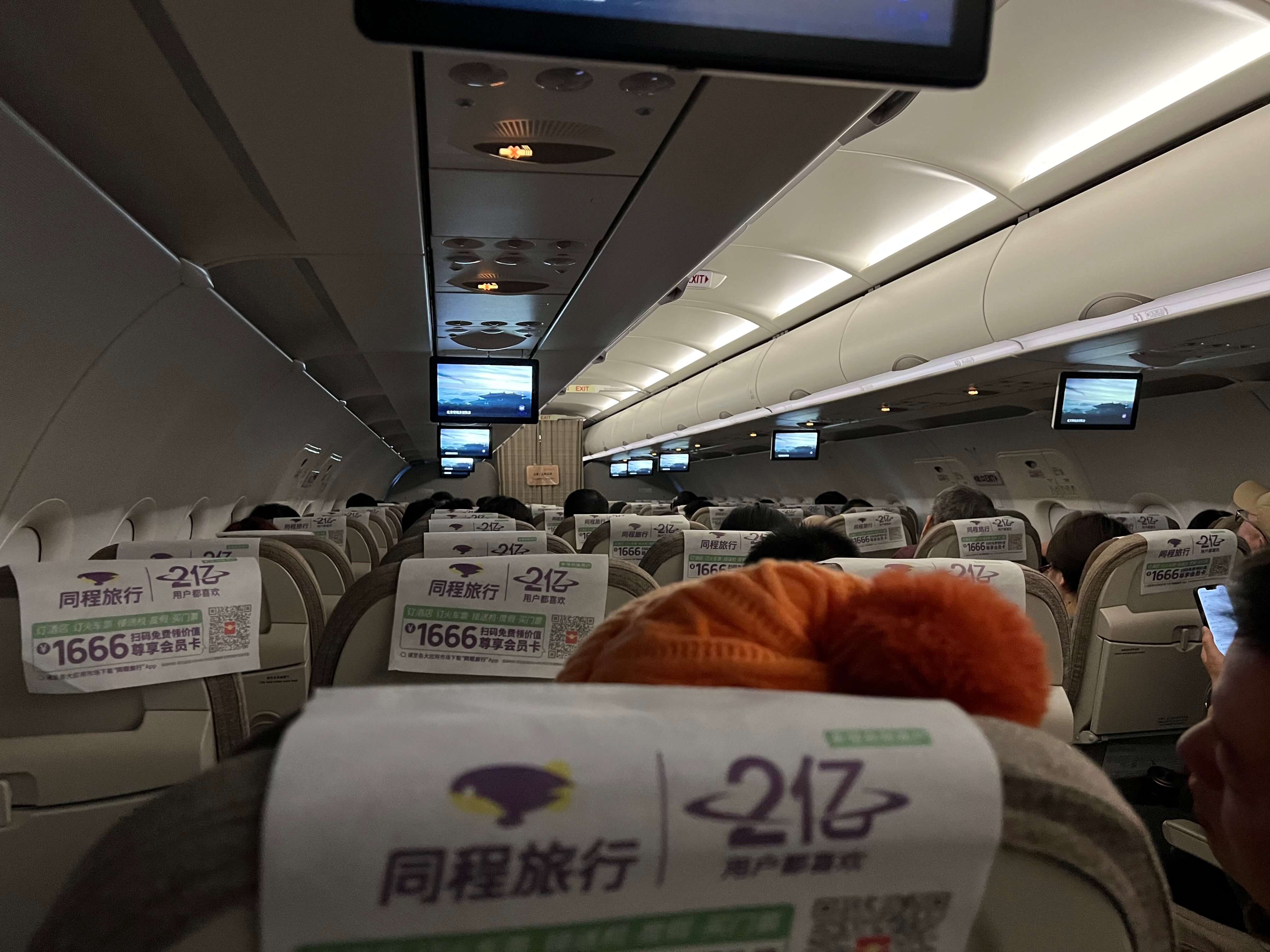 연휴기간이 아닌 주말에 탑승했는데도, 비행기엔 사람이 꽉 차있었어요. 원래 항상 이렇게 만석으로 이동하나 궁금했지만 저또한 연길-상해편은 처음 탑승해 본 거라 알 수가 없었답니다.