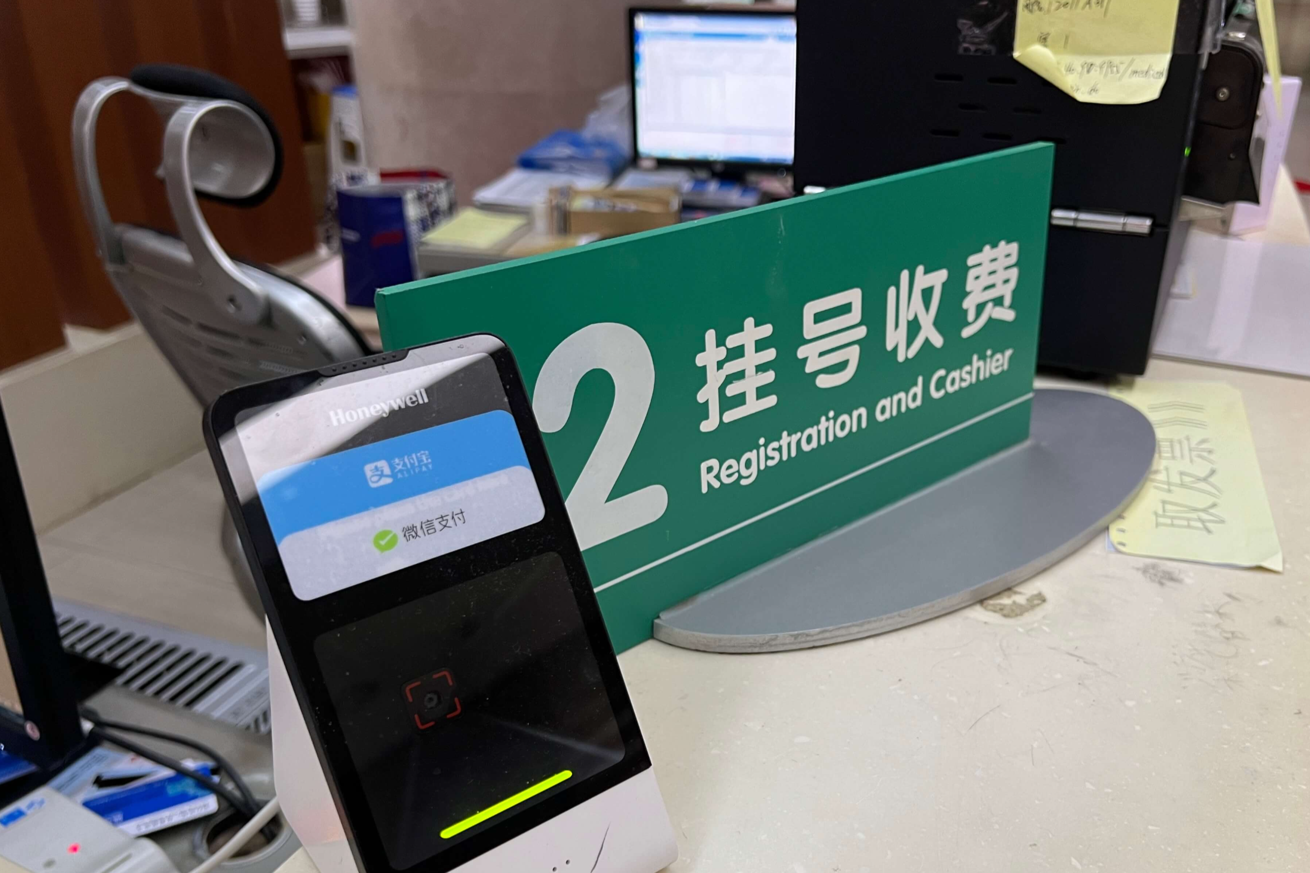 작성을 완료하면 비용을 납부하러 다시 1층 로비로 이동하여 挂号 수납하러 이동해요. 비용은 1인당 113위안이 발생하였고, 위챗으로 결제하였어요.