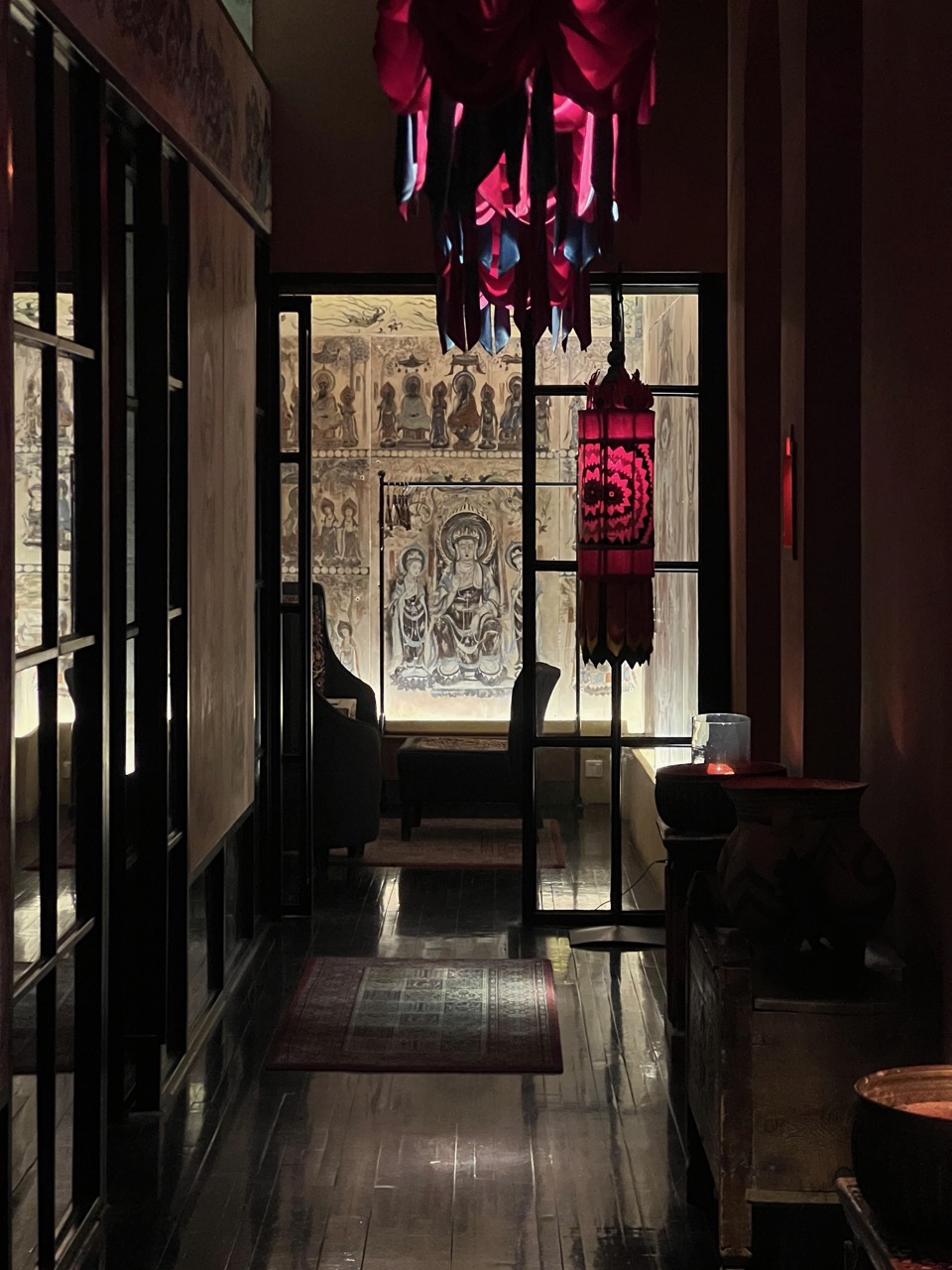 실내 인테리어는 운남 소수민족의 전통 문양과 목조 장식, 은은한 조명이 어우러져 독특하고 고풍스러운 분위기를 자아냅니다.
